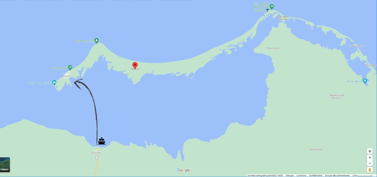 Jeudi 7, on quitte l'hôtel et Cancun à 7h pour se rendre au port de Chiquila.