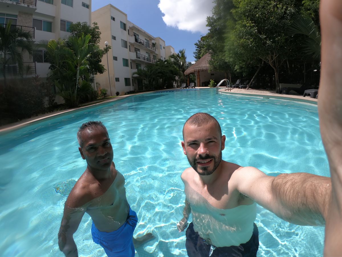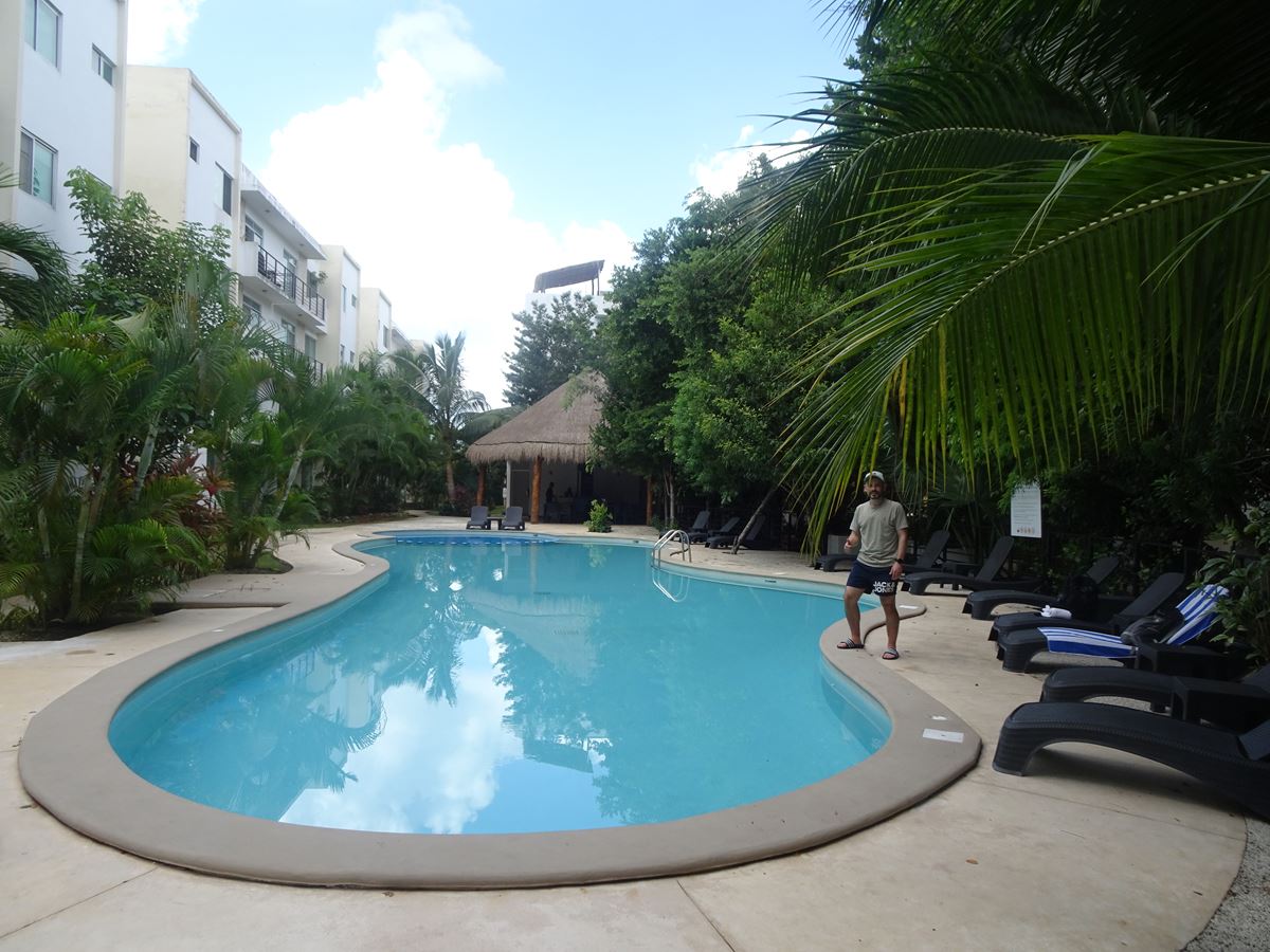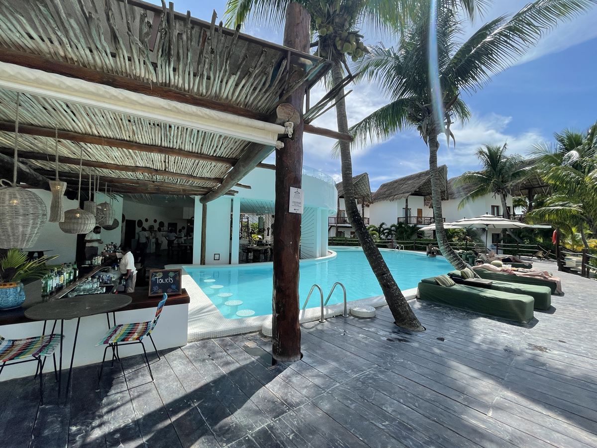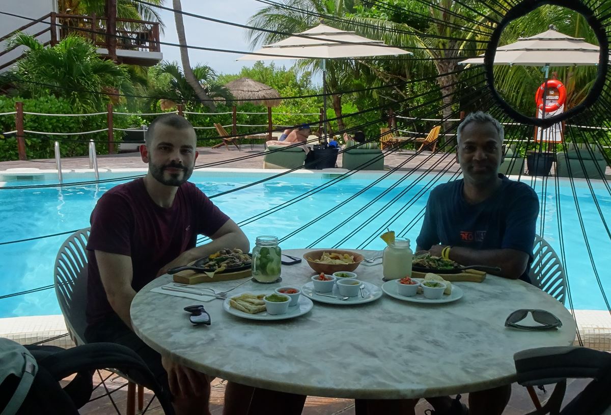 Petit déjeuner au bord de la piscine avant de boucler les valises et quitter Tulum vers 8h30.
