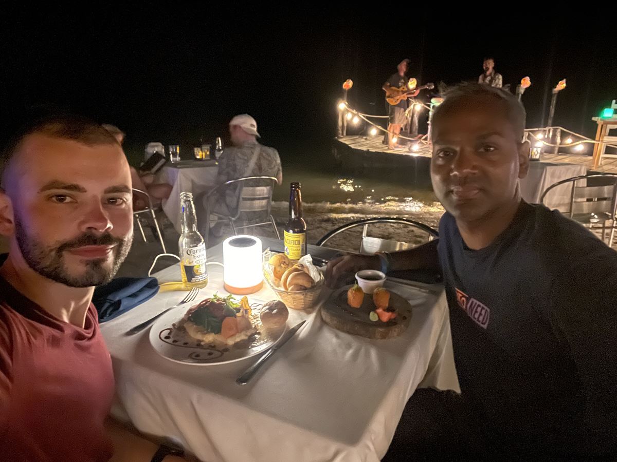 Vers 19h15, on arrive à travers la végétation à un bout de plage où l'eau abrite du plancton luminescent.