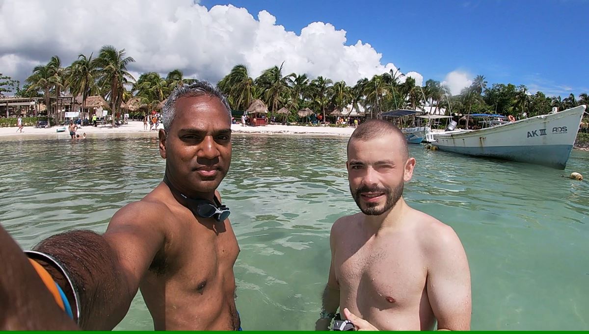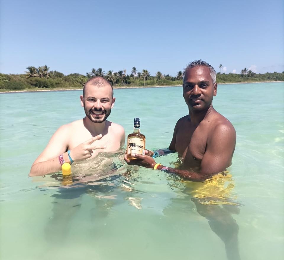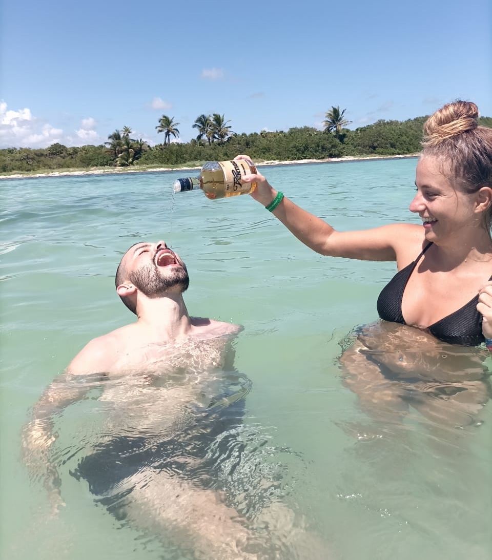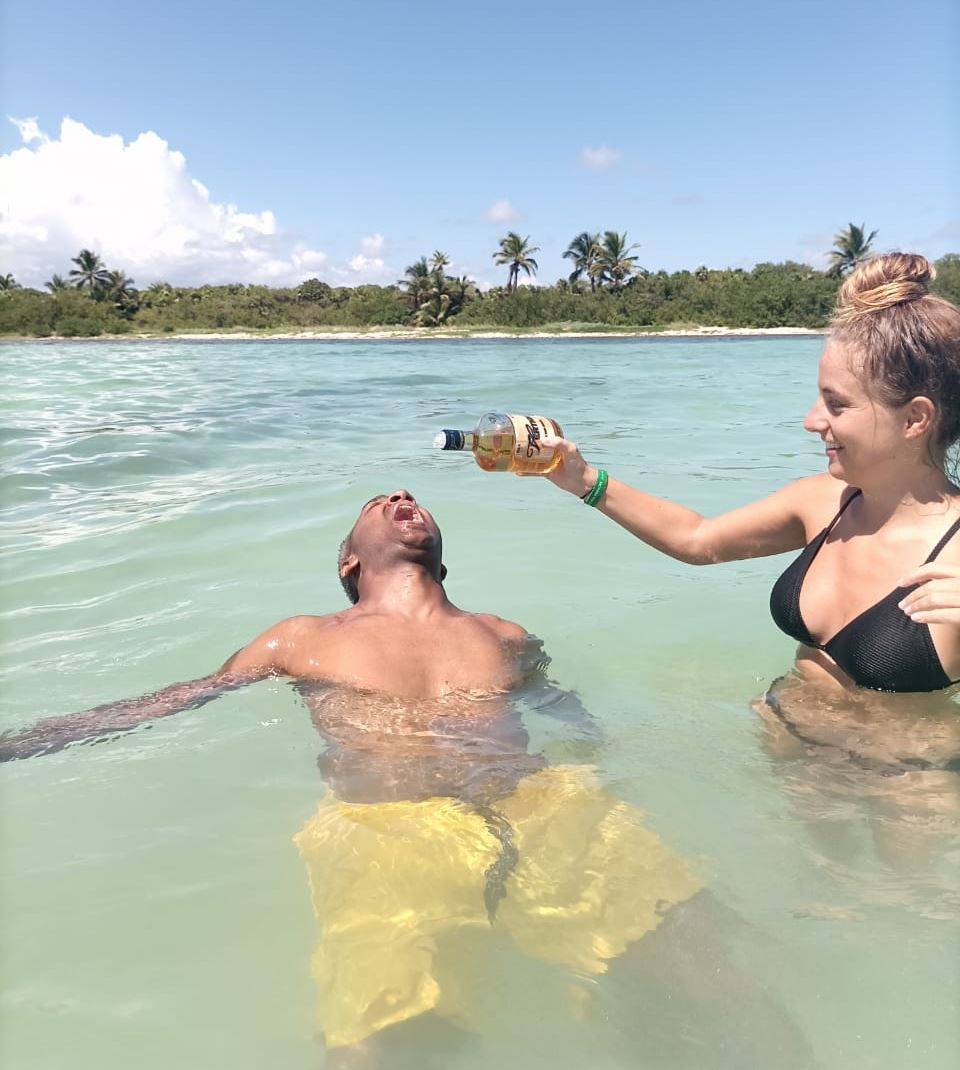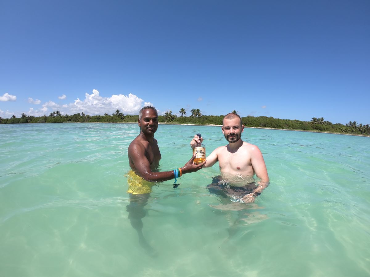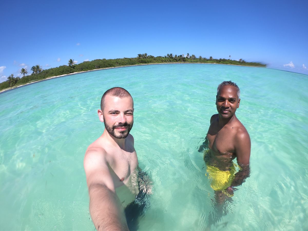 Quel bonheur pour ce premier rafraîchissement dans la mer des Caraïbes !