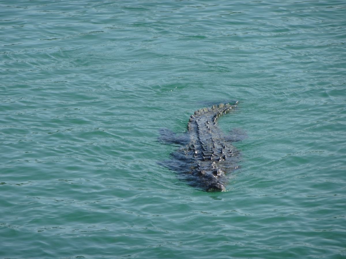 A mi-chemin, on passe sur un pont duquel Fabien sait qu'on peut y voir des crocodiles.
