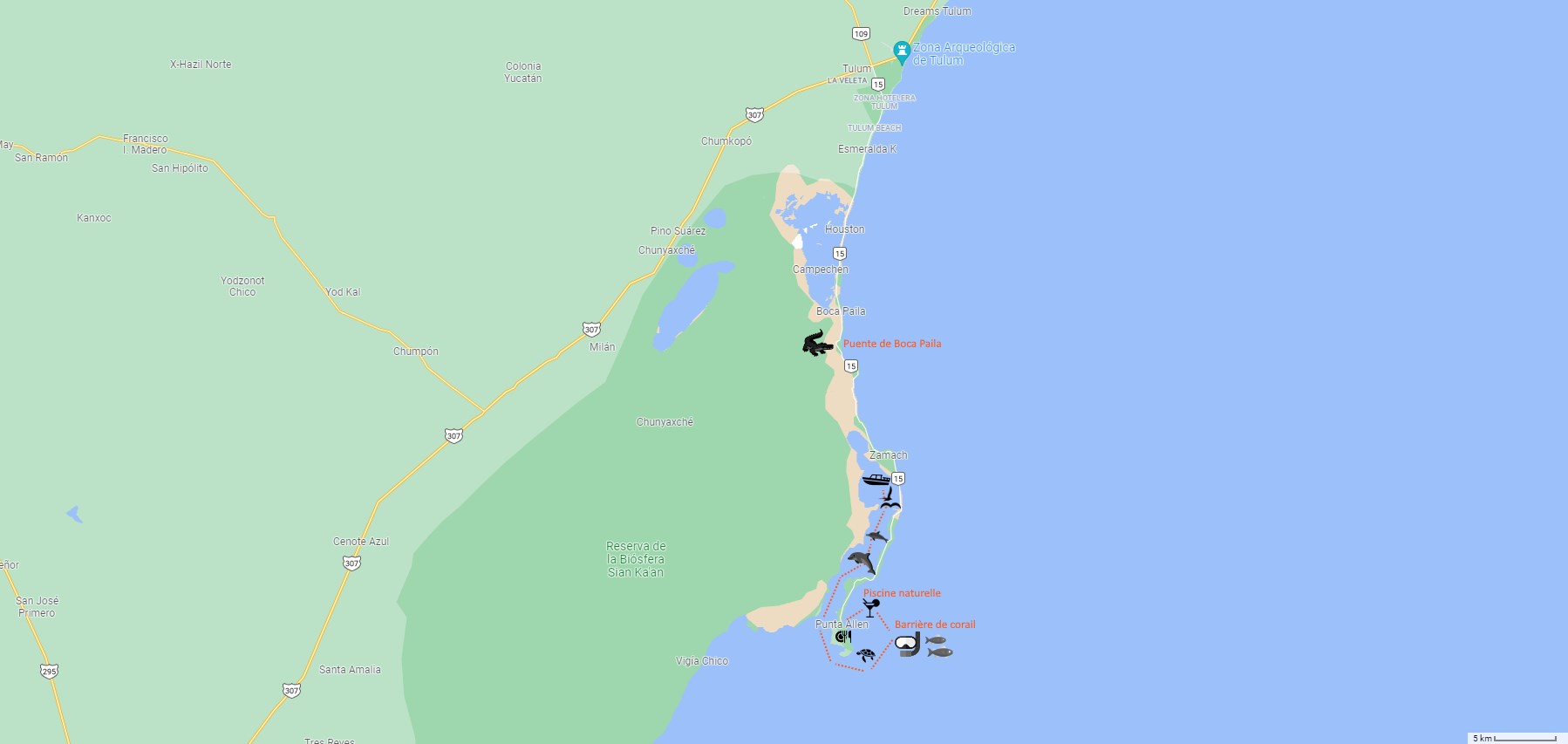 On nous propose de faire un tour en bateau + visite d'une partie de la réserve de Sian Ka'an.