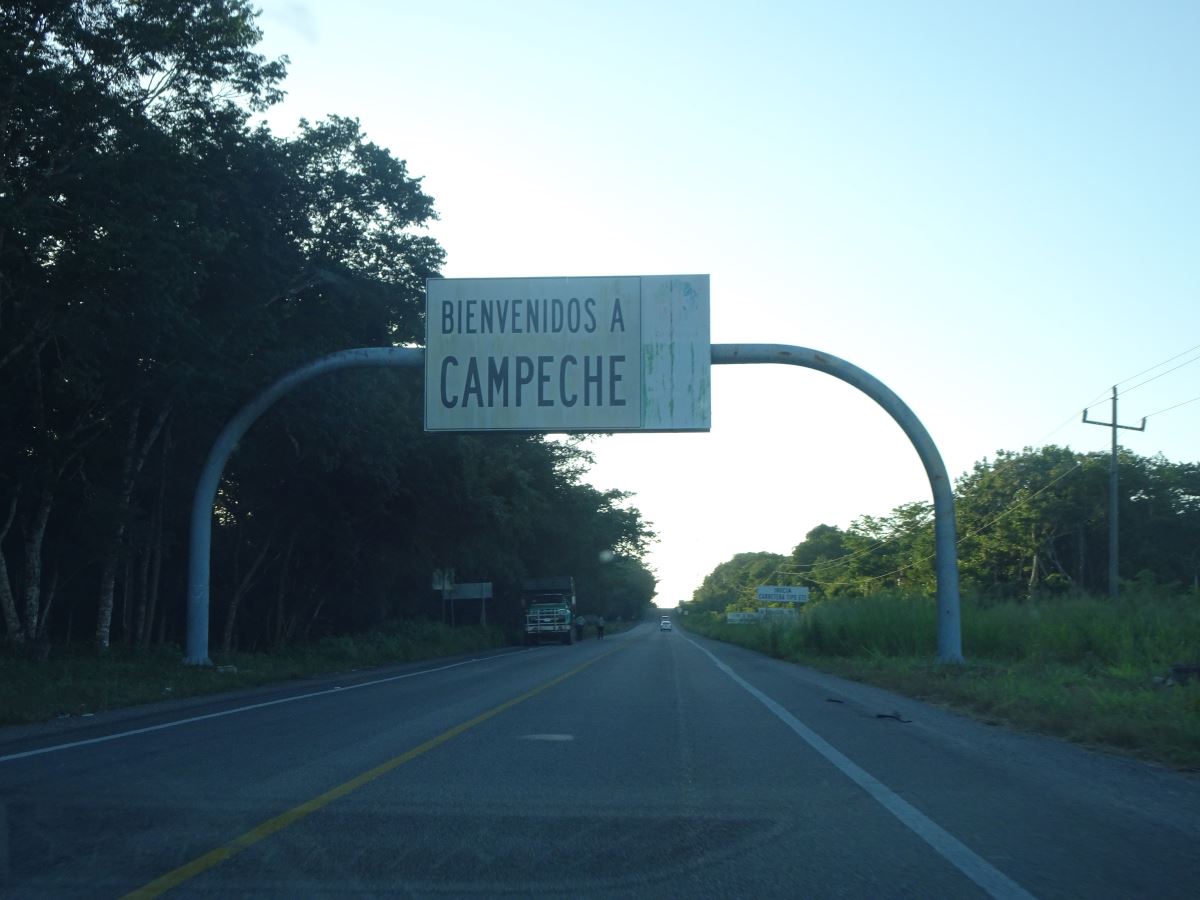 Vers 17h, nous quittons la zone sud de Bacalar et on pique à angle droit vers l'intérieur de la péninsule du Yucatan pour entrer dans l'Etat de Campeche.