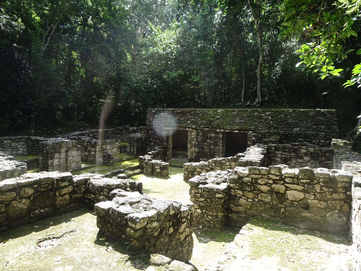 Ce petit site maya, peu visité, tire certainement l’origine de son nom ‘Maison à la bouche de serpent’ de la majestueuse façade de la porte d’entrée de l’édifice principal baptisé Structure II.