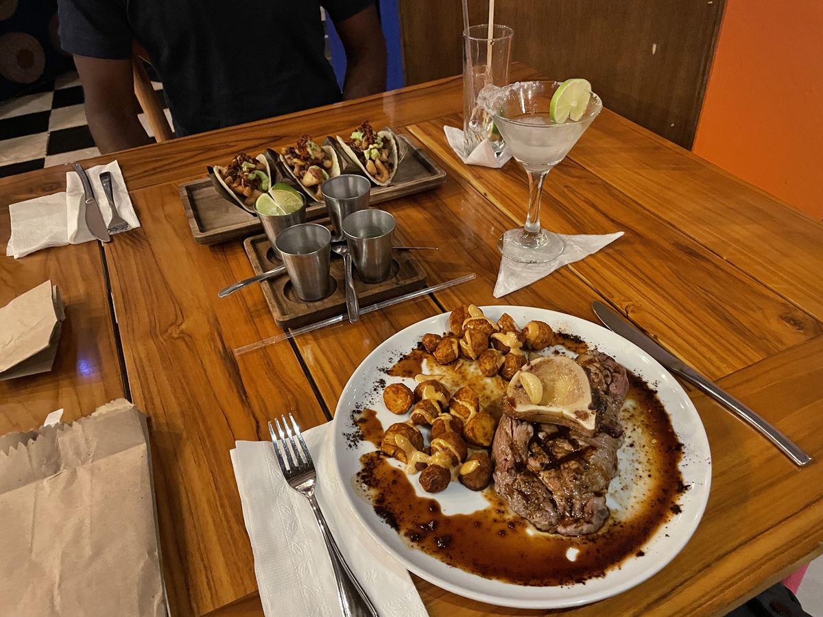 Puis, Mayan Chicken fajitas et parrillada yucateca (assiette de viandes grillées).
