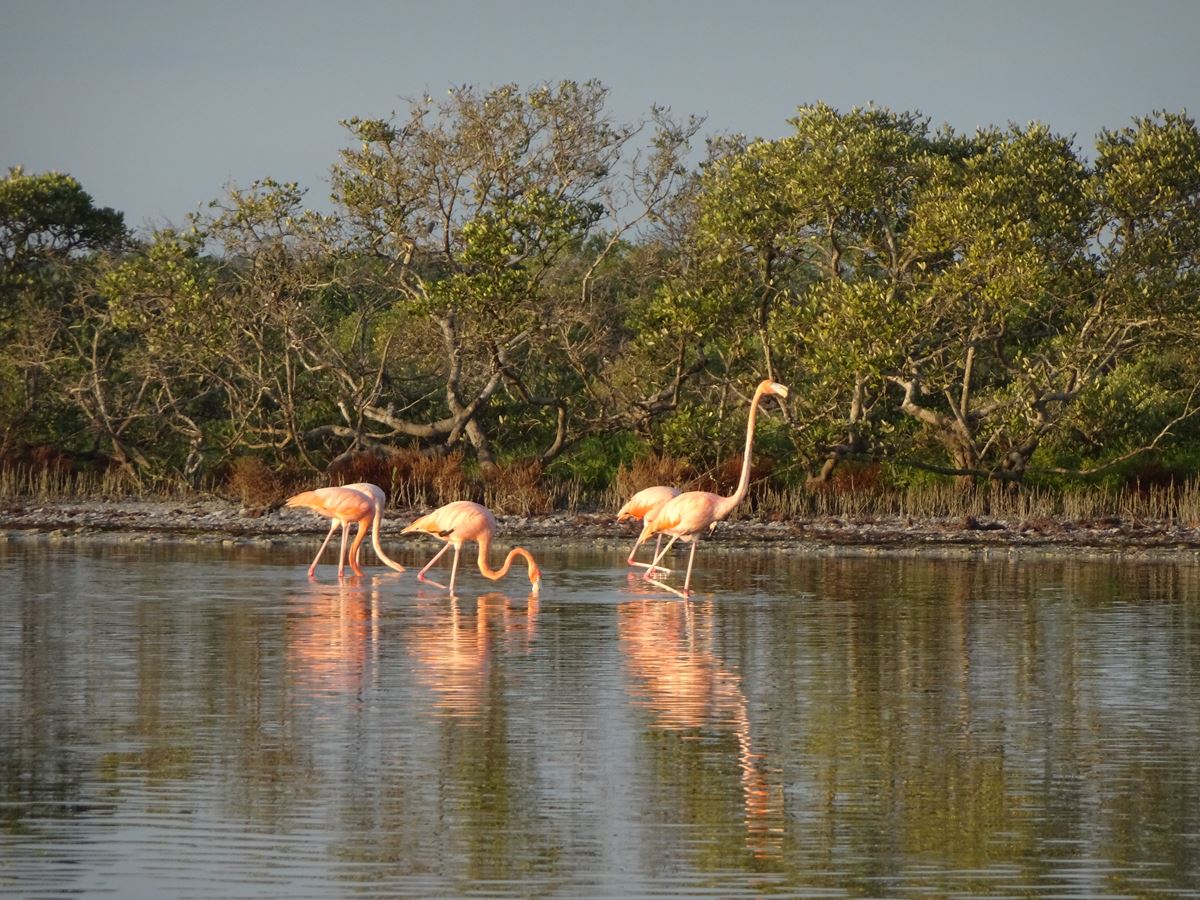 On démarre à nouveau la journée très tôt, à 6h, pour aller voir le Soleil se lever depuis le bateau qui nous emmène faire un tour du lagon de Rio Lagartos.