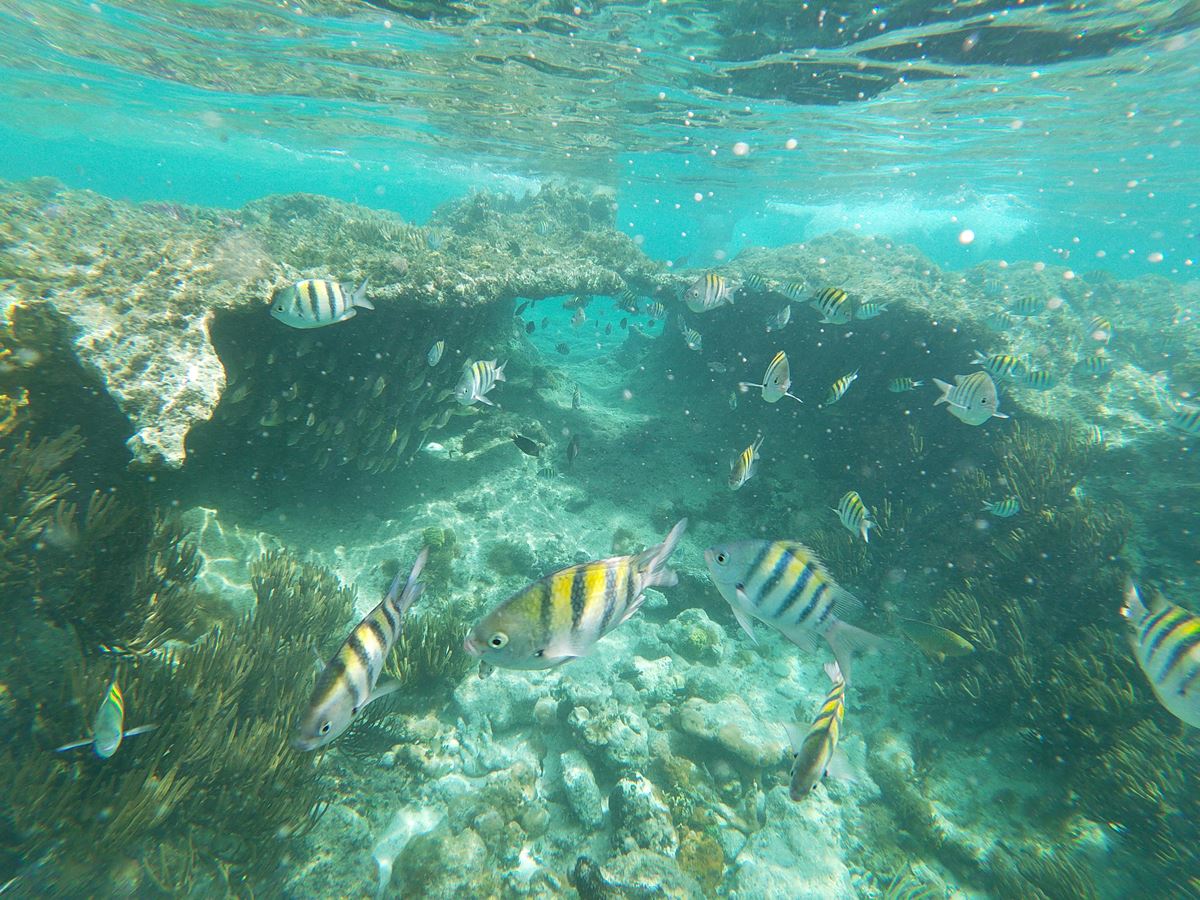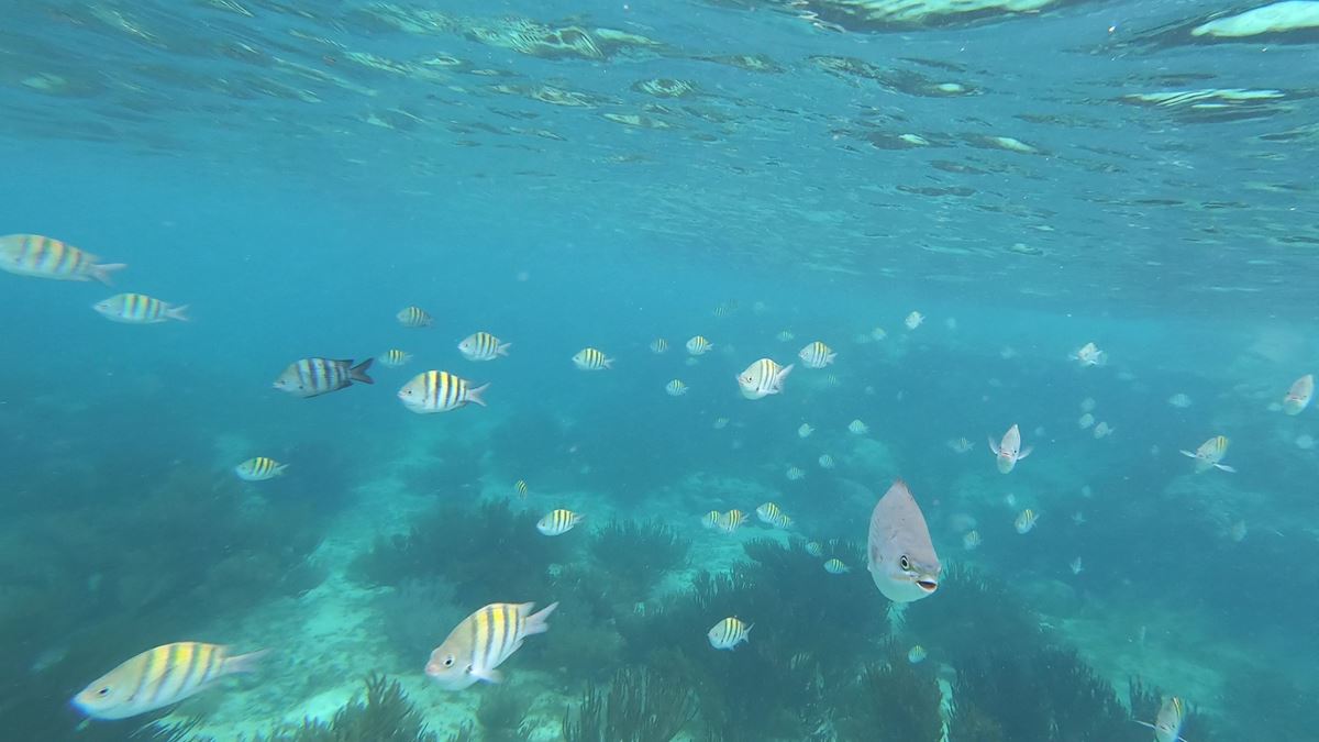 On aperçoit sans souci le fond situé environ 10 mètres sous la surface.