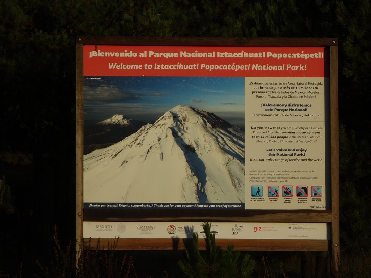 On remonte ensuite par le même chemin horriblement cabossé et pénible vers le chalet où les points de vue sur Iztaccihuatl et Popocatepetl sont très bons