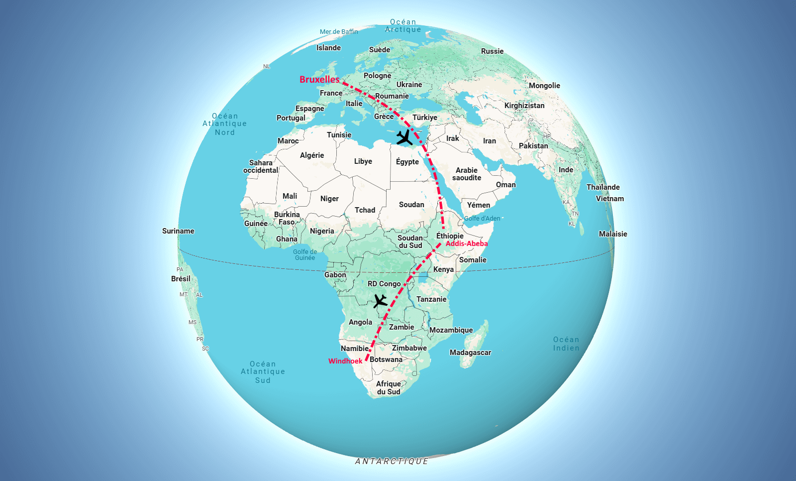 En hiver, la Namibie a un décalage d'une heure (en plus) par rapport à la Belgique.